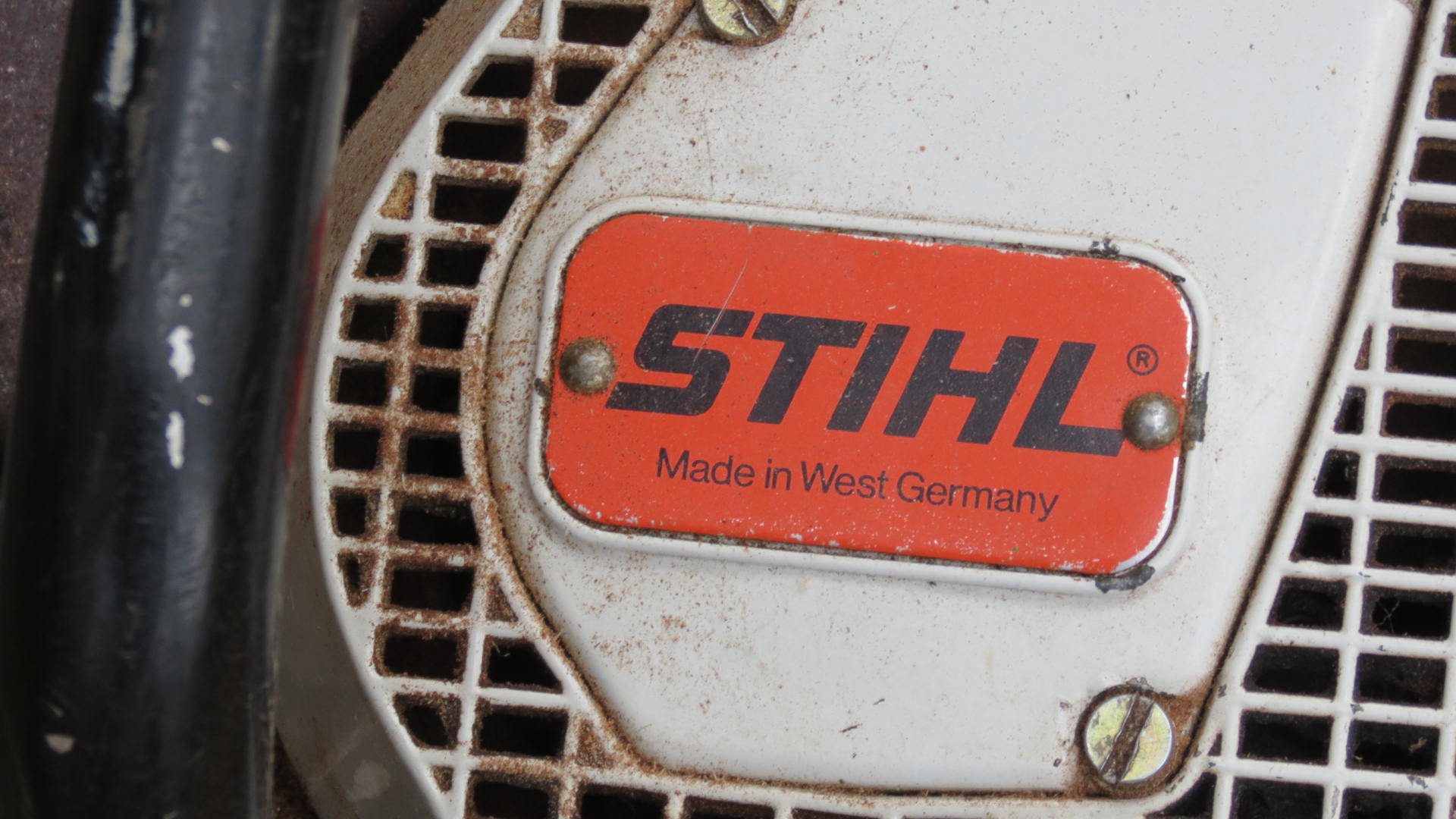 Resting regally on saw bucks I built last autumn, we deployed an arsenal of scrub pads, air tools and elbow grease to clean up the first post. Sporting a fresh chain on the venerable West German-made Stihl chainsaw, I cut the first post to length and then with a decided lack of grace, sliced a slot in the bottom end to slide over the 3/8 inch steel blade embedded in one of the concrete piers.
