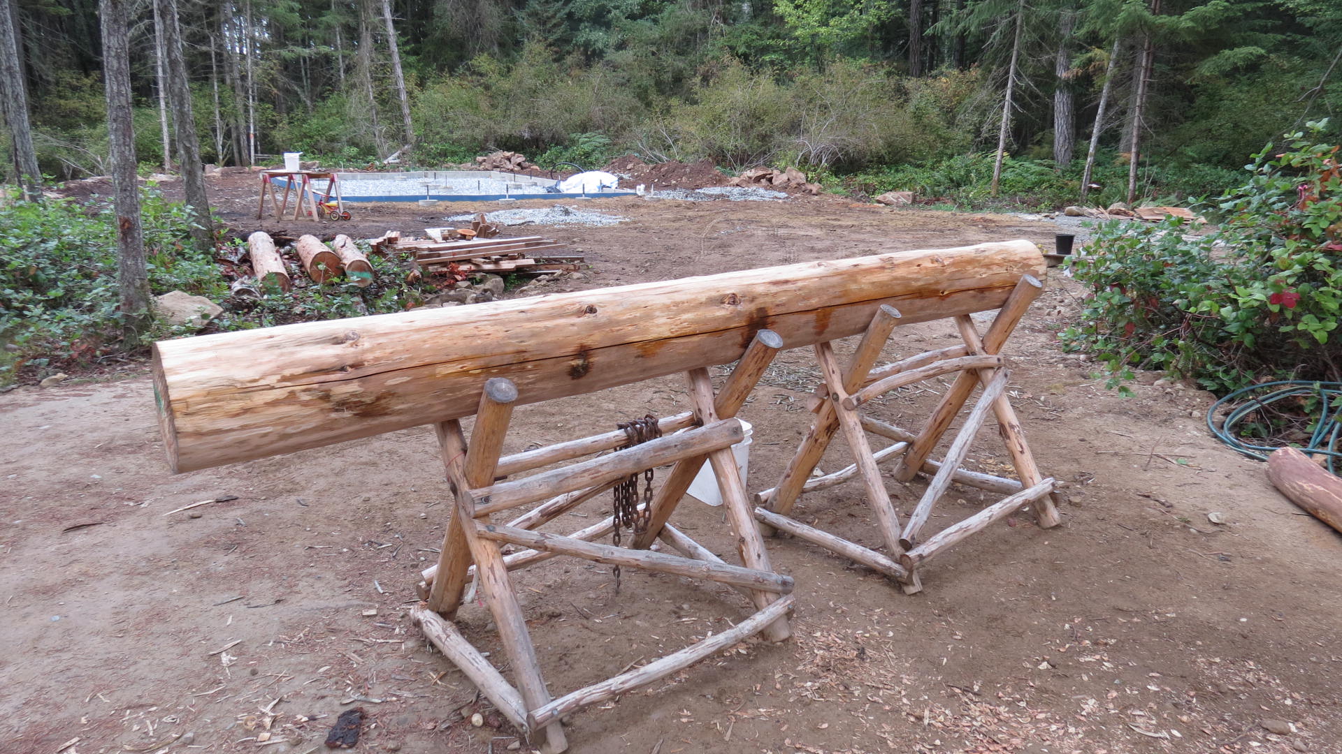 Then last week we surveyed the elevations of the tops of all our foundation piers and I calculated the required post heights for the round wood beams and 6×12 joists to be as level as possible at the necessary final elevation. There’s only a variation of 12mm across the entire foundation system, which I’m pretty happy about considering it was all laid out on a jumbled mass of broken rock with a builder’s level, string lines put up with the help of a sick Kiwi, and a plumb bob.